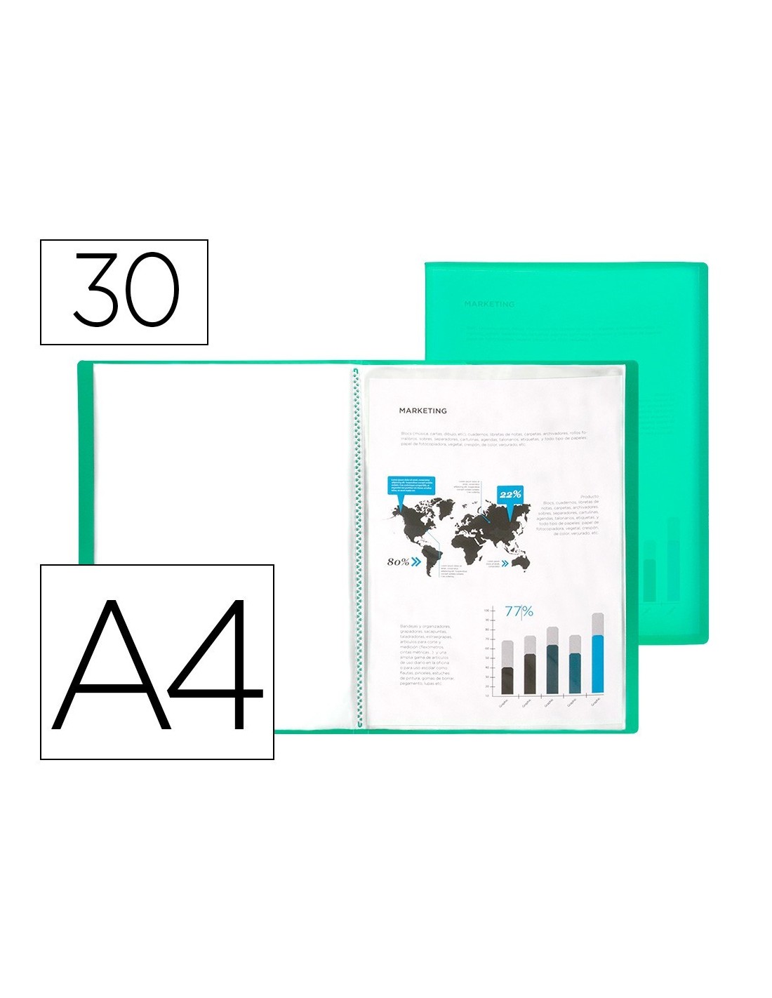 CARPETA LIDERPAPEL ESCAPARATE 30 FUNDAS POLIPROPILENO DIN A4 VERDE TRANSLUCIDO