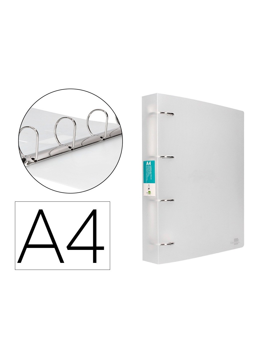 CARPETA LIDERPAPEL 4 ANILLAS MIXTAS 40 MM POLIPROPILENO DIN A4 TRANSPARENTE