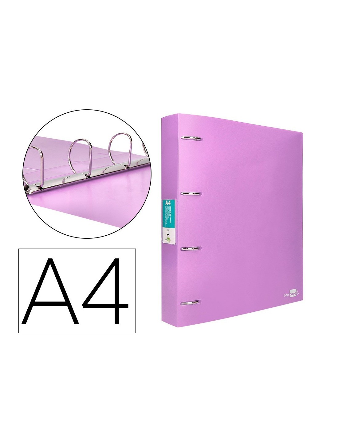 CARPETA LIDERPAPEL 4 ANILLAS MIXTAS 40 MM POLIPROPILENO DIN A4 LAVANDA OPACO
