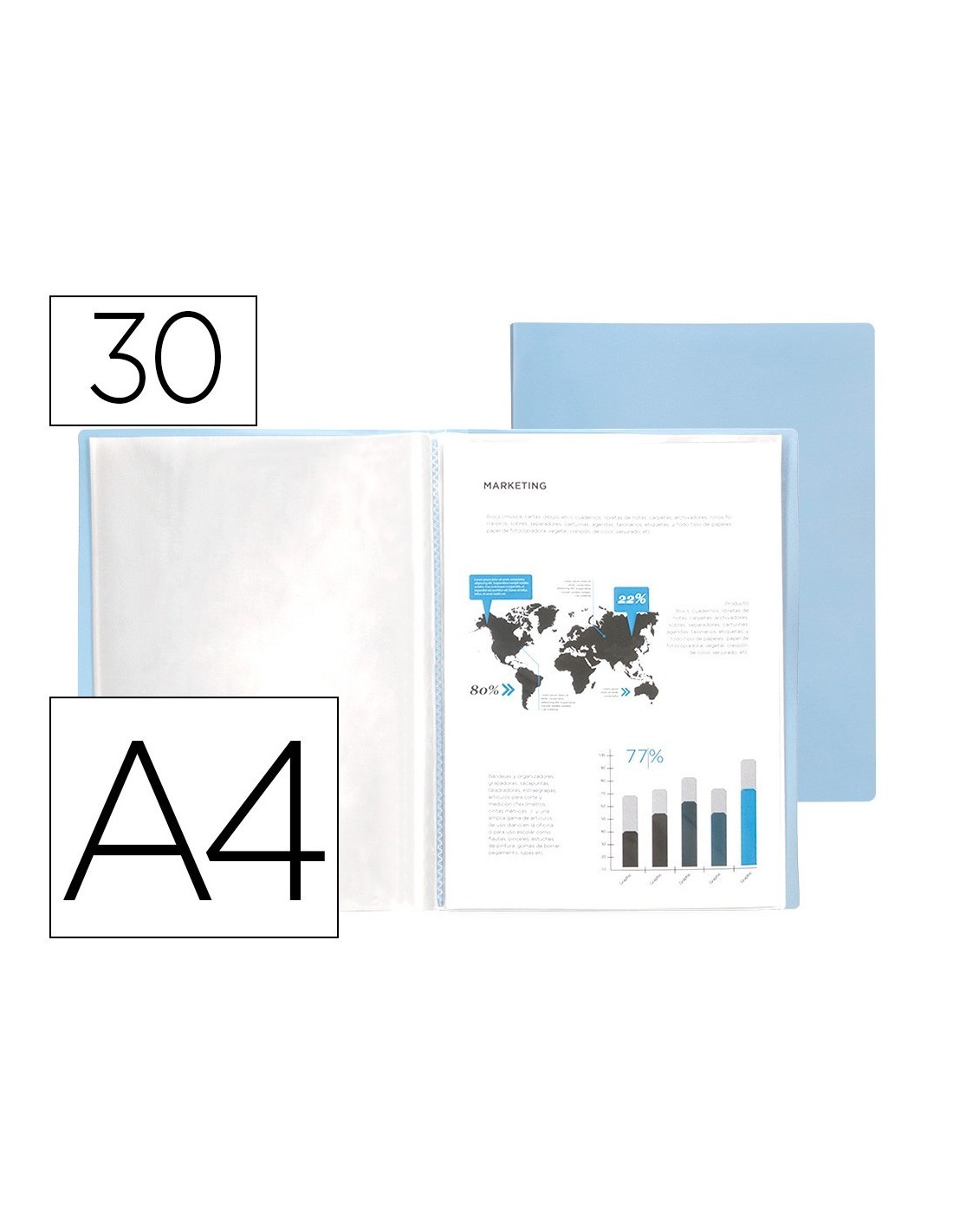 CARPETA LIDERPAPEL ESCAPARATE 30 FUNDAS POLIPROPILENO DIN A4 CELESTE OPACO