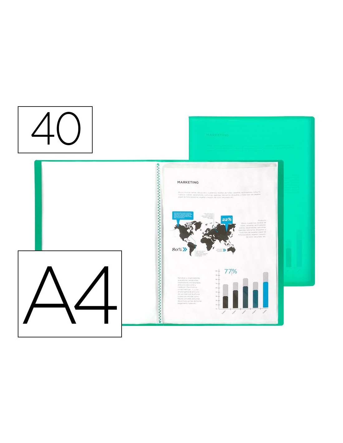 CARPETA LIDERPAPEL ESCAPARATE 40 FUNDAS POLIPROPILENO DIN A4 VERDE TRANSLUCIDO