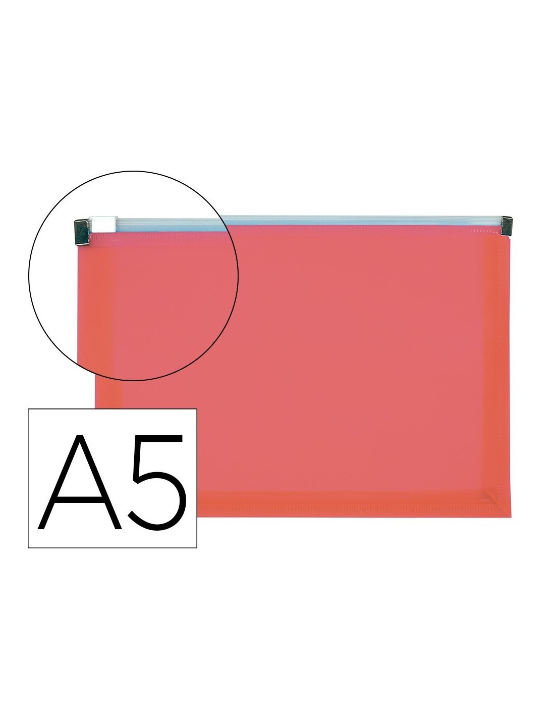 CARPETA DOSSIER LIDERPAPEL A5 CIERRE DE CREMALLERA ROJO TRANSLUCIDO