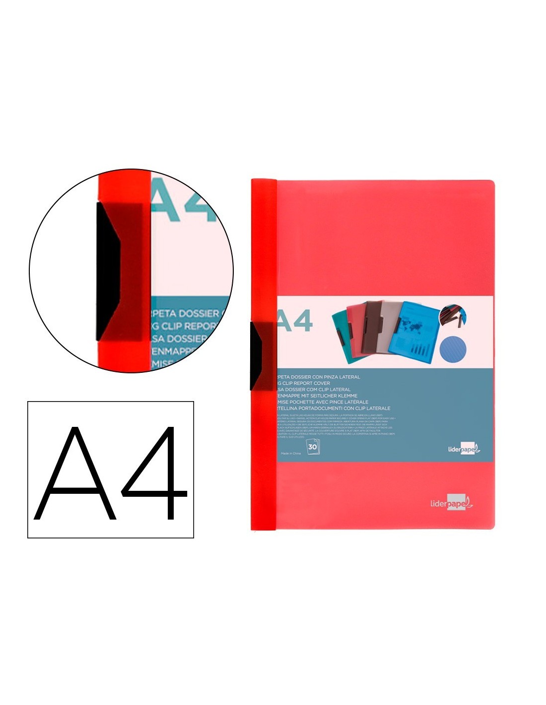 CARPETA LIDERPAPEL DOSSIER PINZA LATERAL POLIPROPILENO DIN A4 ROJO TRANSLUCIDO 30 HOJAS PINZA DESLIZANTE