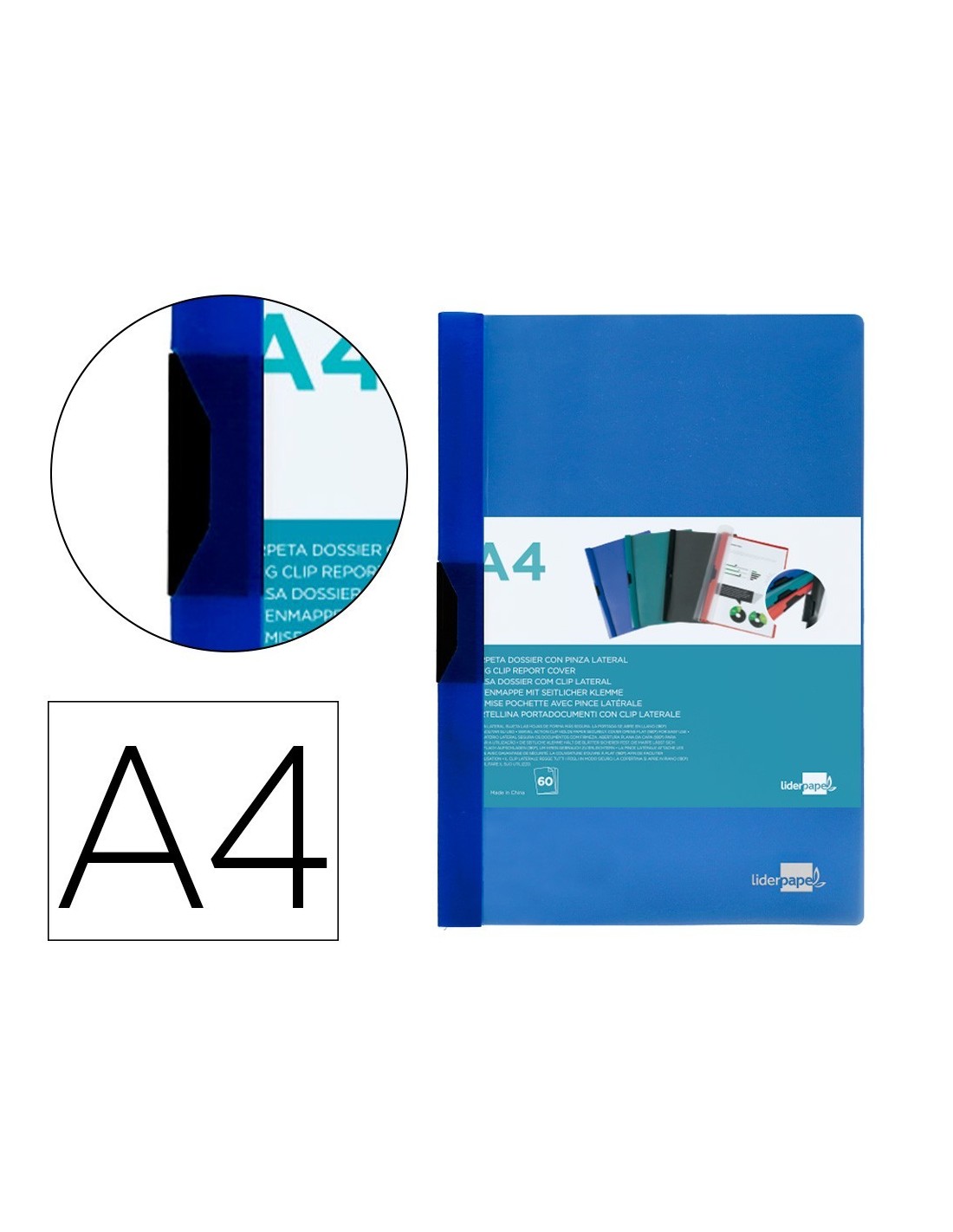 CARPETA LIDERPAPEL DOSSIER PINZA LATERAL POLIPROPILENO DIN A4 AZUL TRANSLUCIDO 60 HOJAS PINZA DESLIZANTE