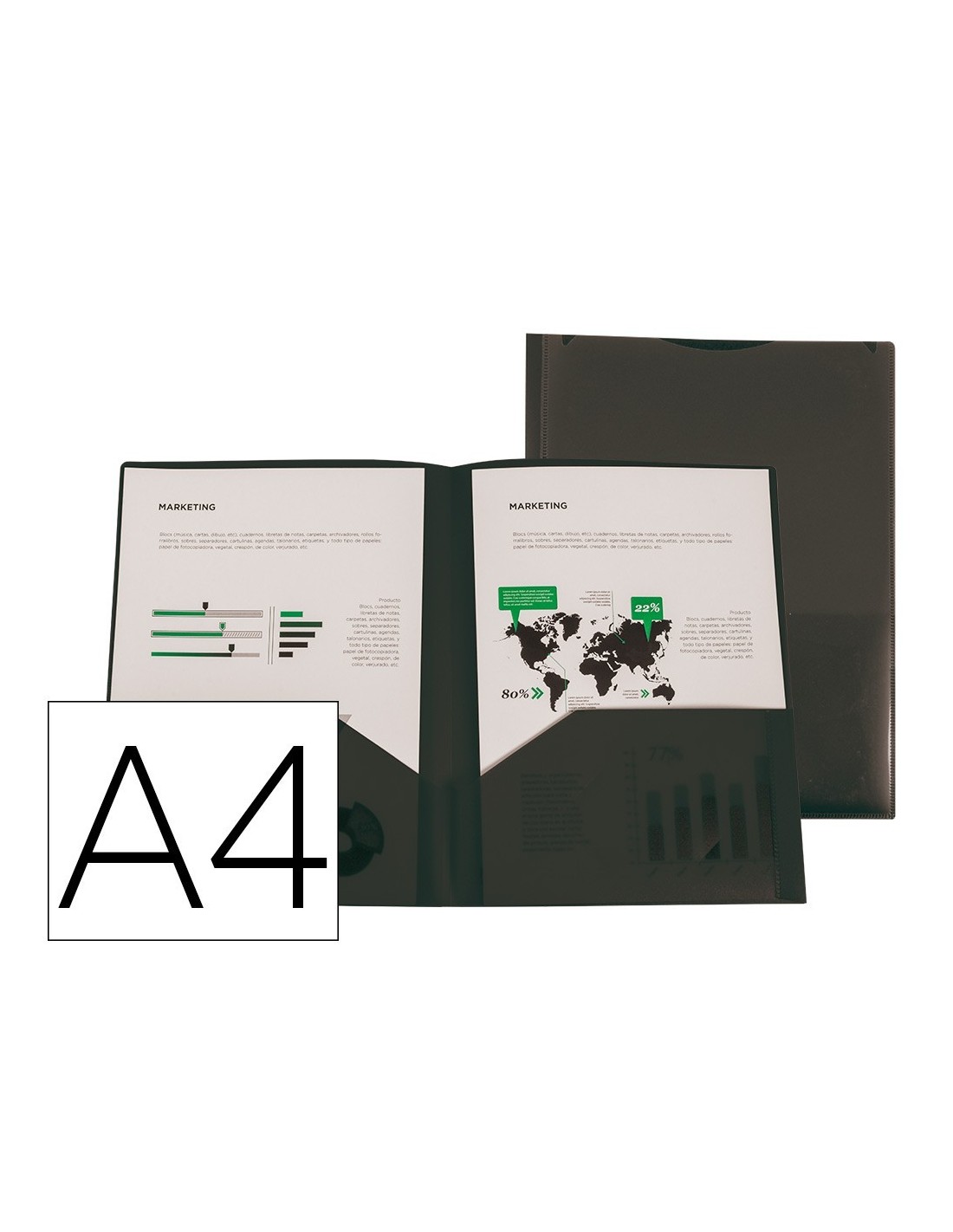 CARPETA LIDERPAPEL DOSSIER DOS BOLSAS CANGURO POLIPROPILENO DIN A4 NEGRO OPACO