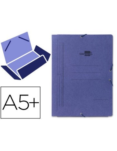 CARPETA LIDERPAPEL GOMAS CUARTO 3 SOLAPAS CARTON PINTADO AZUL
