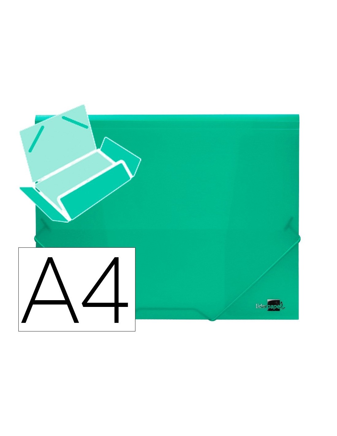 CARPETA LIDERPAPEL GOMAS SOLAPAS 34963 POLIPROPILENO DIN A4 VERDE TRANSLUCIDO