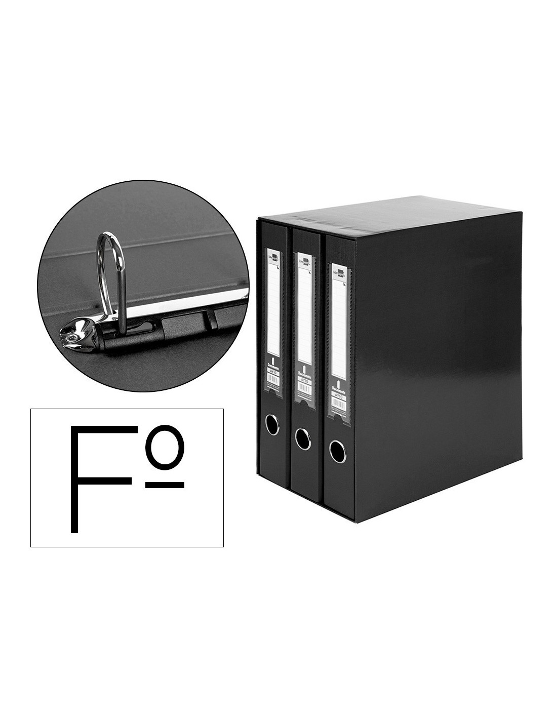 MODULO LIDERPAPEL 3 ARCHIVADORES FOLIO 2 ANILLAS MIXTAS 40MM NEGRO