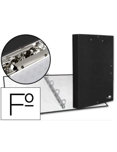 CARPETA DE 4 ANILLAS 25MM REDONDAS LIDERPAPEL FOLIO CARTON FORRADO PAPER COAT NEGRA CON MINICLIP Y SOLAPAS