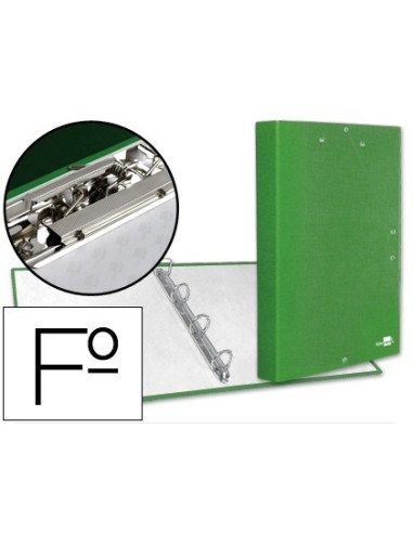 CARPETA DE 4 ANILLAS 25MM REDONDAS LIDERPAPEL FOLIO CARTON FORRADO PAPER COAT VERDE CLARO CON MINICLIP Y SOLAPAS