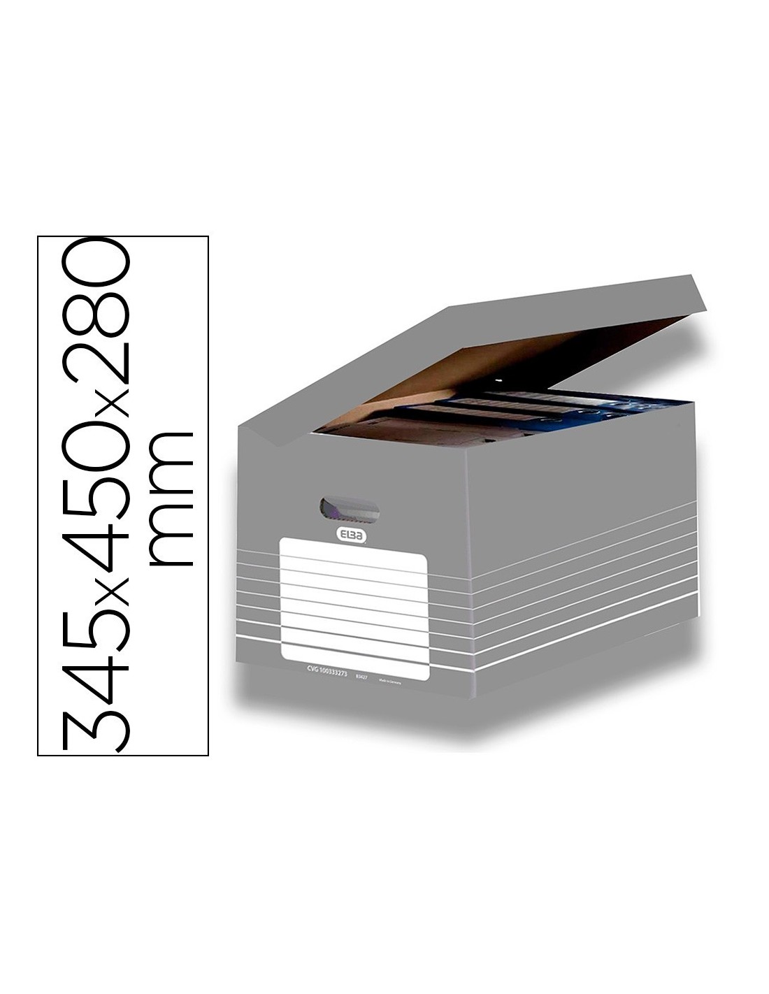 CAJON ELBA CARTON COLOR GRIS PARA 5 CAJAS ARCHIVO DEFINITIVO 345X450X280MM