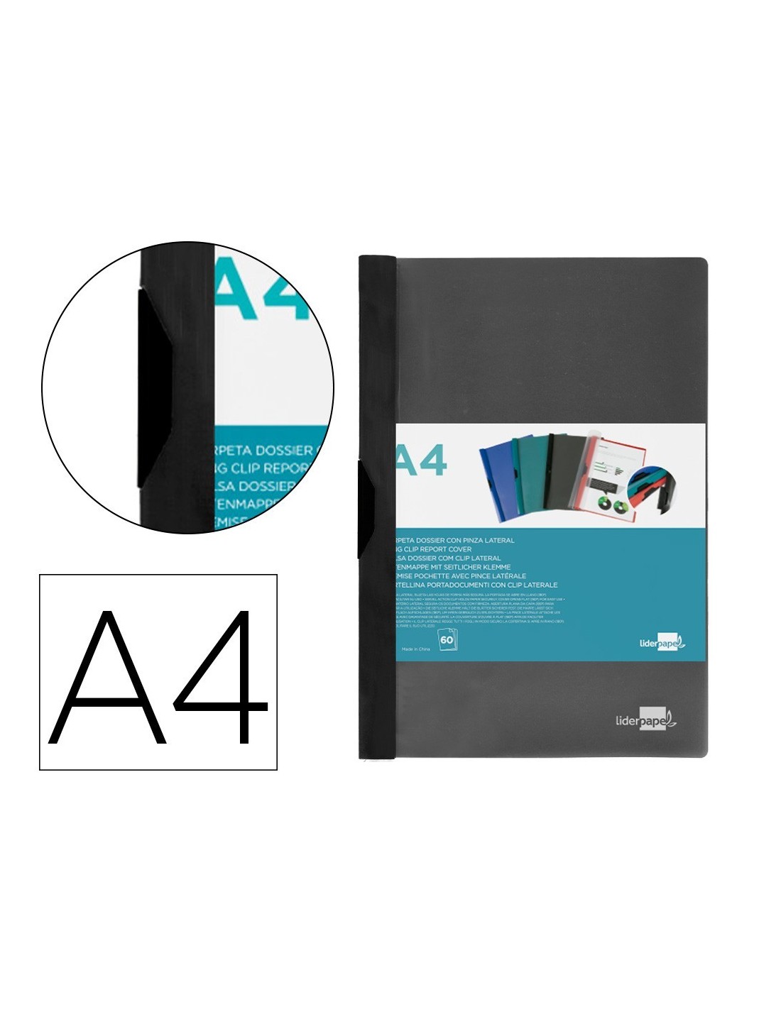 CARPETA LIDERPAPEL DOSSIER PINZA LATERAL 45325 POLIPROPILENO DIN A4 NEGRO 60 HOJAS PINZA DESLIZANTE