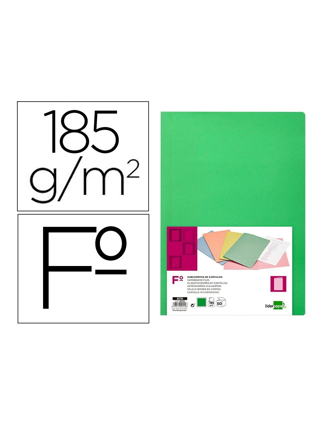 SUBCARPETA LIDERPAPEL FOLIO VERDE INTENSO 180G/M2