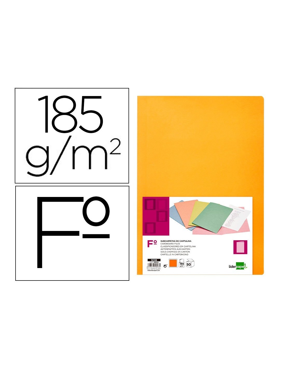 SUBCARPETA LIDERPAPEL FOLIO NARANJA INTENSO 180G/M2
