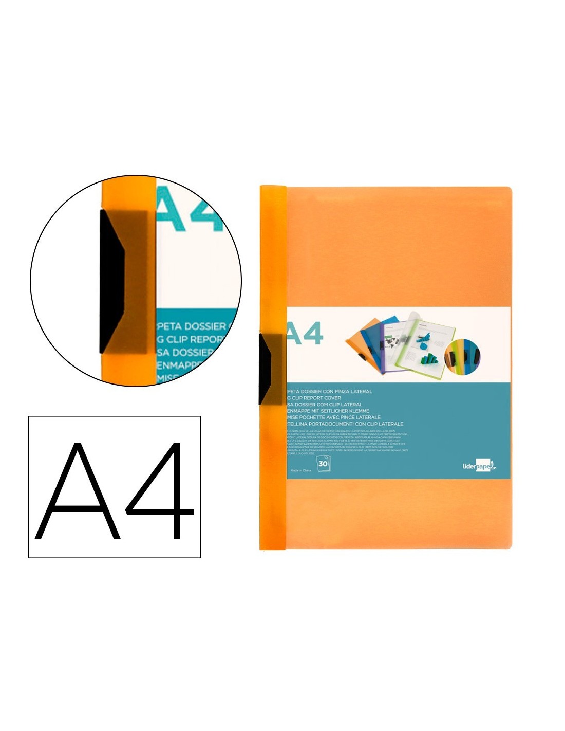 CARPETA LIDERPAPEL DOSSIER PINZA LATERAL 45301 POLIPROPILENO DIN A4 NARANJA 30 HOJAS PINZA DESLIZANTE