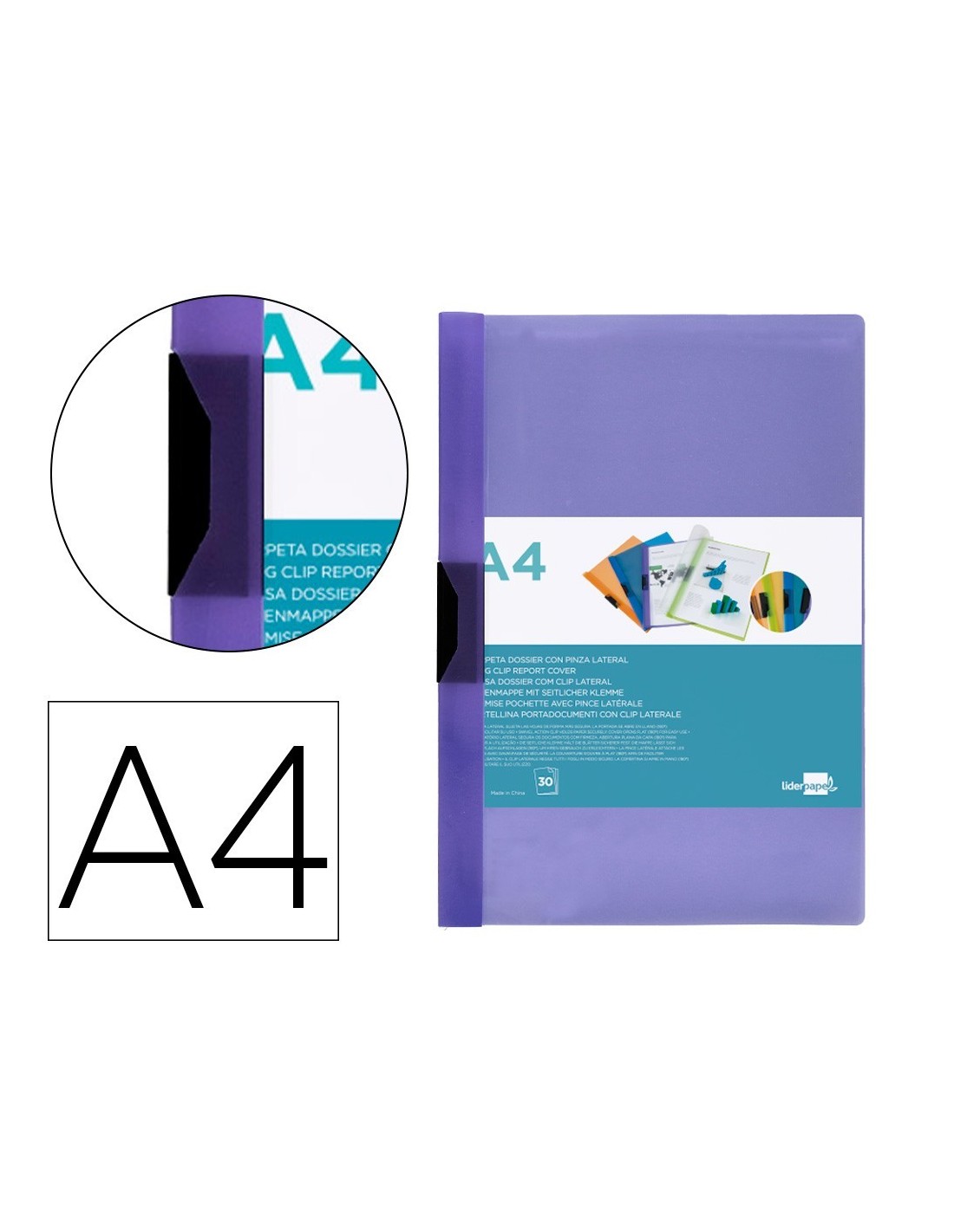 CARPETA LIDERPAPEL DOSSIER PINZA LATERAL 45306 POLIPROPILENO DIN A4 VIOLETA 30 HOJAS PINZA DESLIZANTE