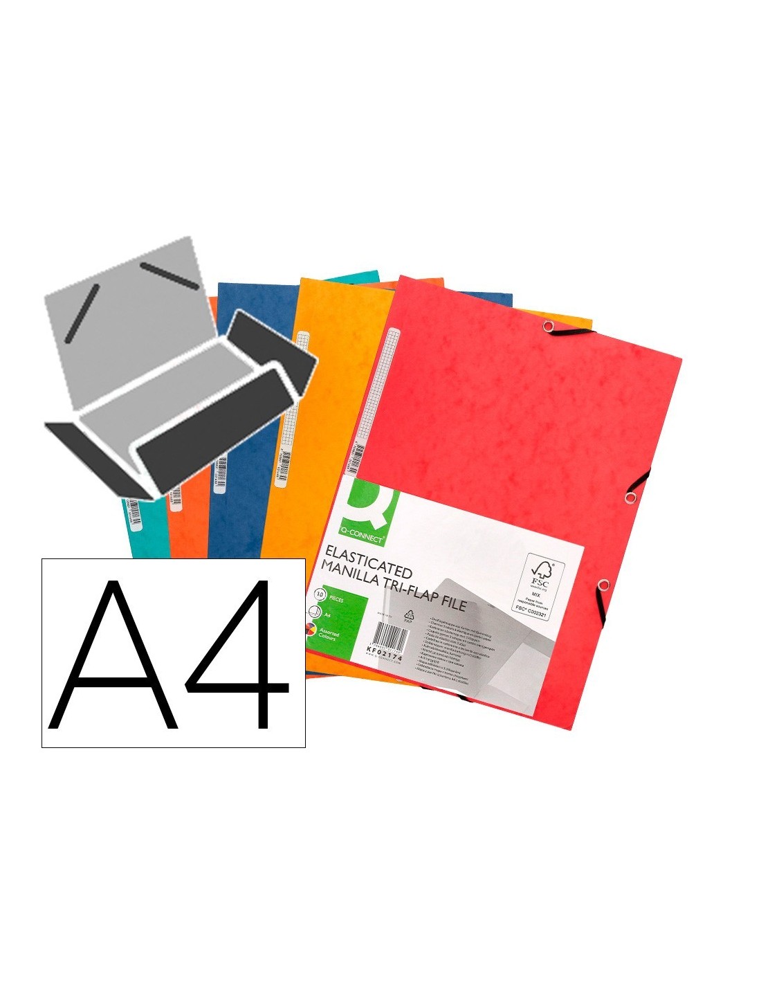 CARPETA Q-CONNECT GOMAS KF02174 CARTON SIMIL-PRESPAN SOLAPAS 320X243 MM PACK DE 5 UNIDADES COLORES SURTIDOS