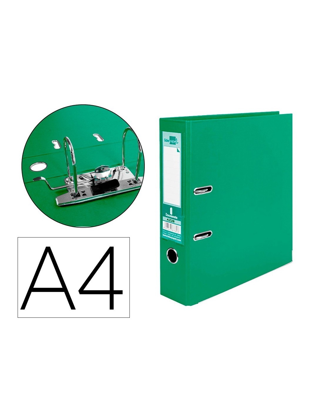 ARCHIVADOR DE PALANCA LIDERPAPEL A4 DOCUMENTA FORRADO PVC CON RADO LOMO 75MM VERDE COMPRESOR METALICO