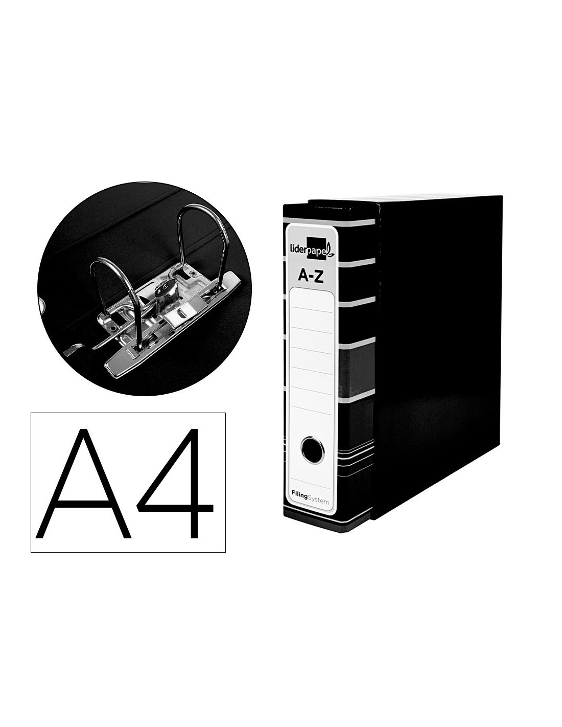 ARCHIVADOR DE PALANCA LIDERPAPEL A4 FILING SYSTEM FORRADO SIN RADO LOMO 80MM NEGRO CON CAJA Y COMPRESOR METALICO