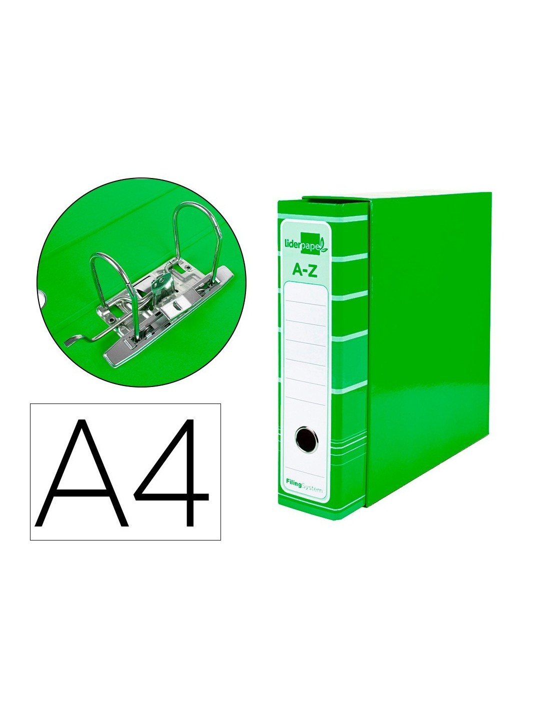 ARCHIVADOR DE PALANCA LIDERPAPEL A4 FILING SYSTEM FORRADO SIN RADO LOMO 80MM VERDECON CAJA Y COMPRESOR METALICO