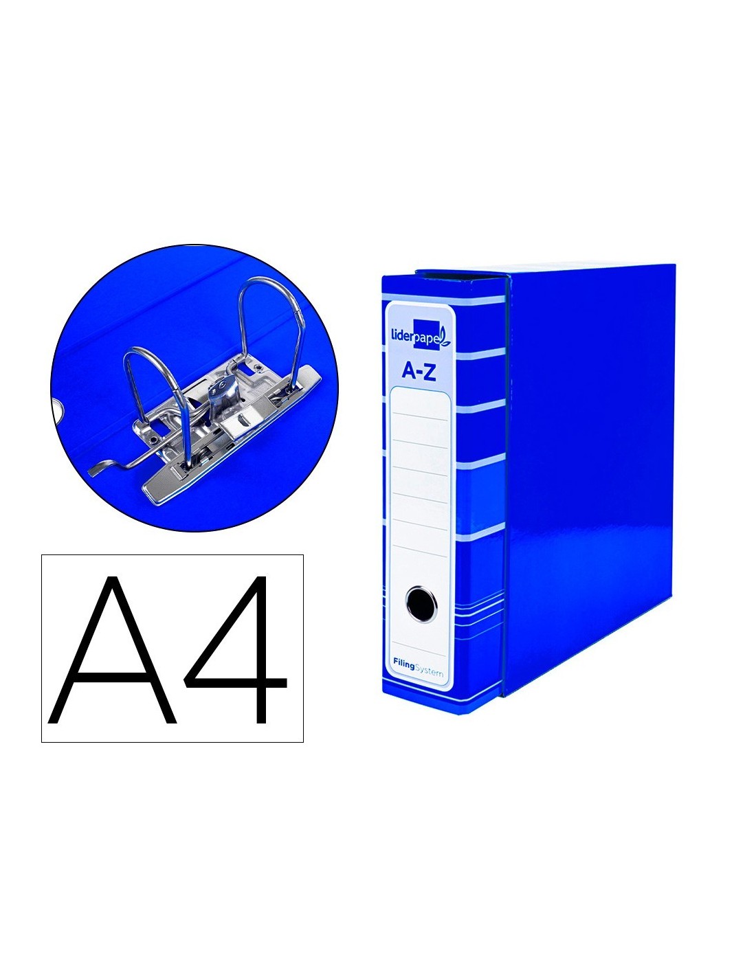 ARCHIVADOR DE PALANCA LIDERPAPEL A4 FILING SYSTEM FORRADO SIN RADO LOMO 80MM AZUL CON CAJA Y COMPRESOR METALICO