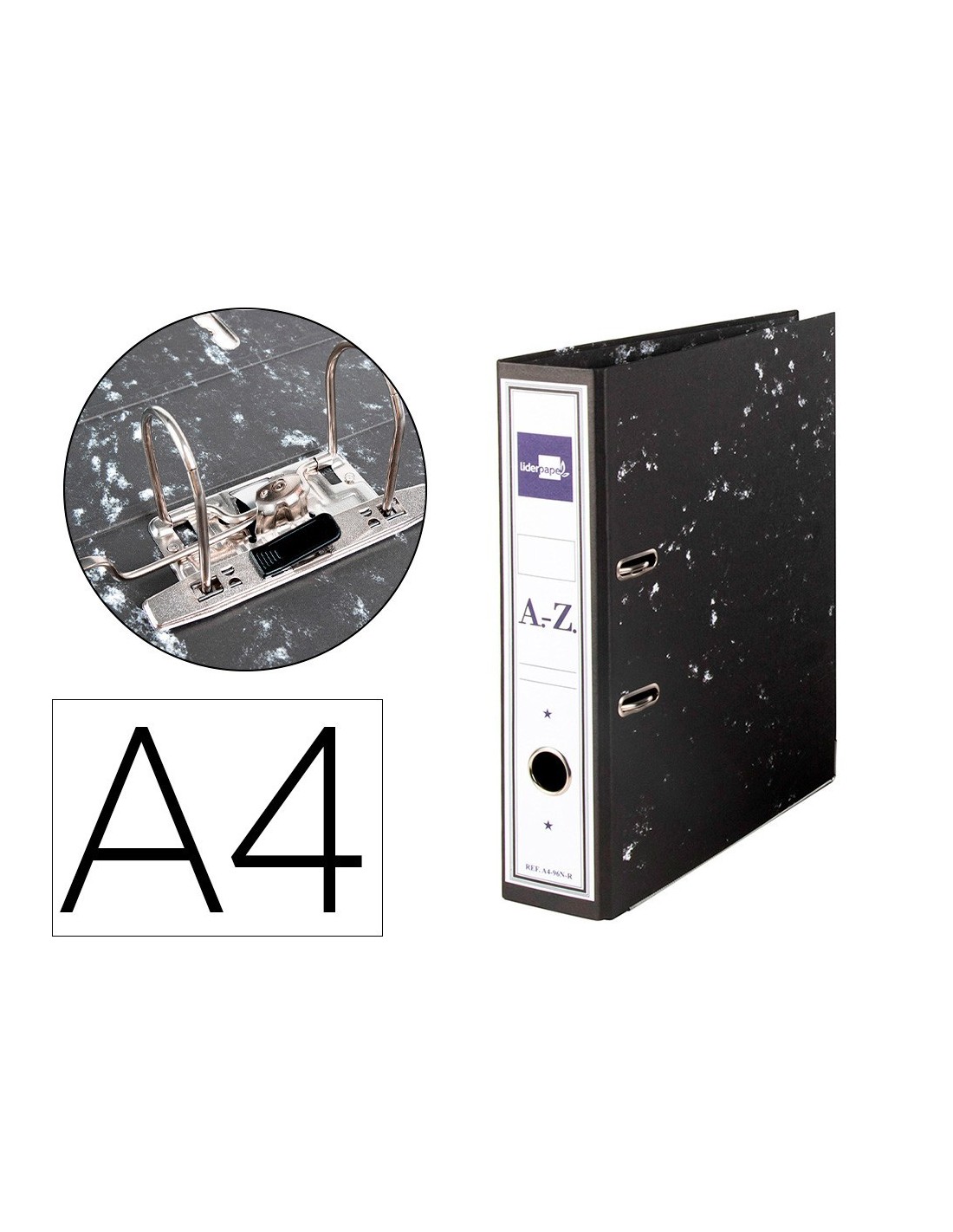 ARCHIVADOR DE PALANCA LIDERPAPEL CARTON FORRADO DIN A4 JASPEADO NEGRO SIN CAJA-CON RADO