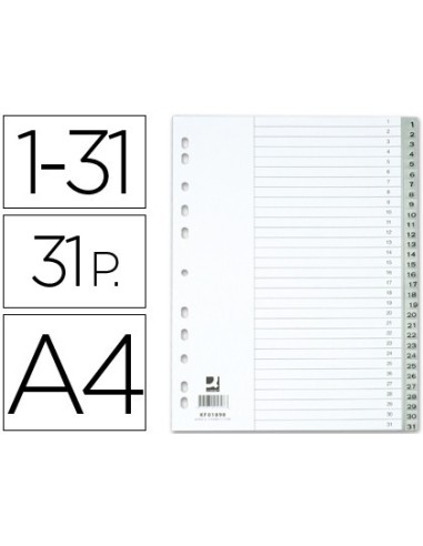SEPARADOR NUMERICO Q-CONNECT PLASTICO 1-31 JUEGO DE 31 SEPARADORES DIN A4 MULTITALADRO
