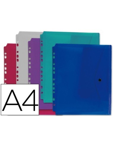CARPETA LIDERPAPEL DOSSIER BROCHE 36669 POLIPROPILENO DIN A4 PACK DE 5 COL.SURTIDOS TRANSPARENTE MULTITALADRO