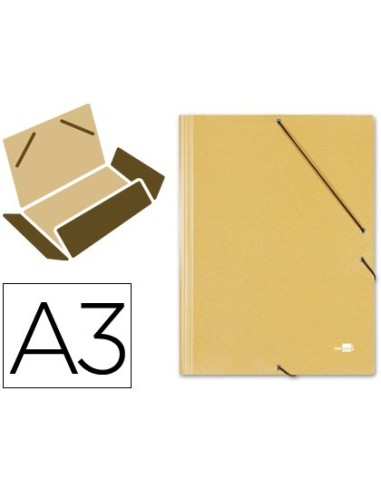 CARPETA LIDERPAPEL GOMAS A3 3 SOLAPAS CARTON PRESPAN AMARILLA