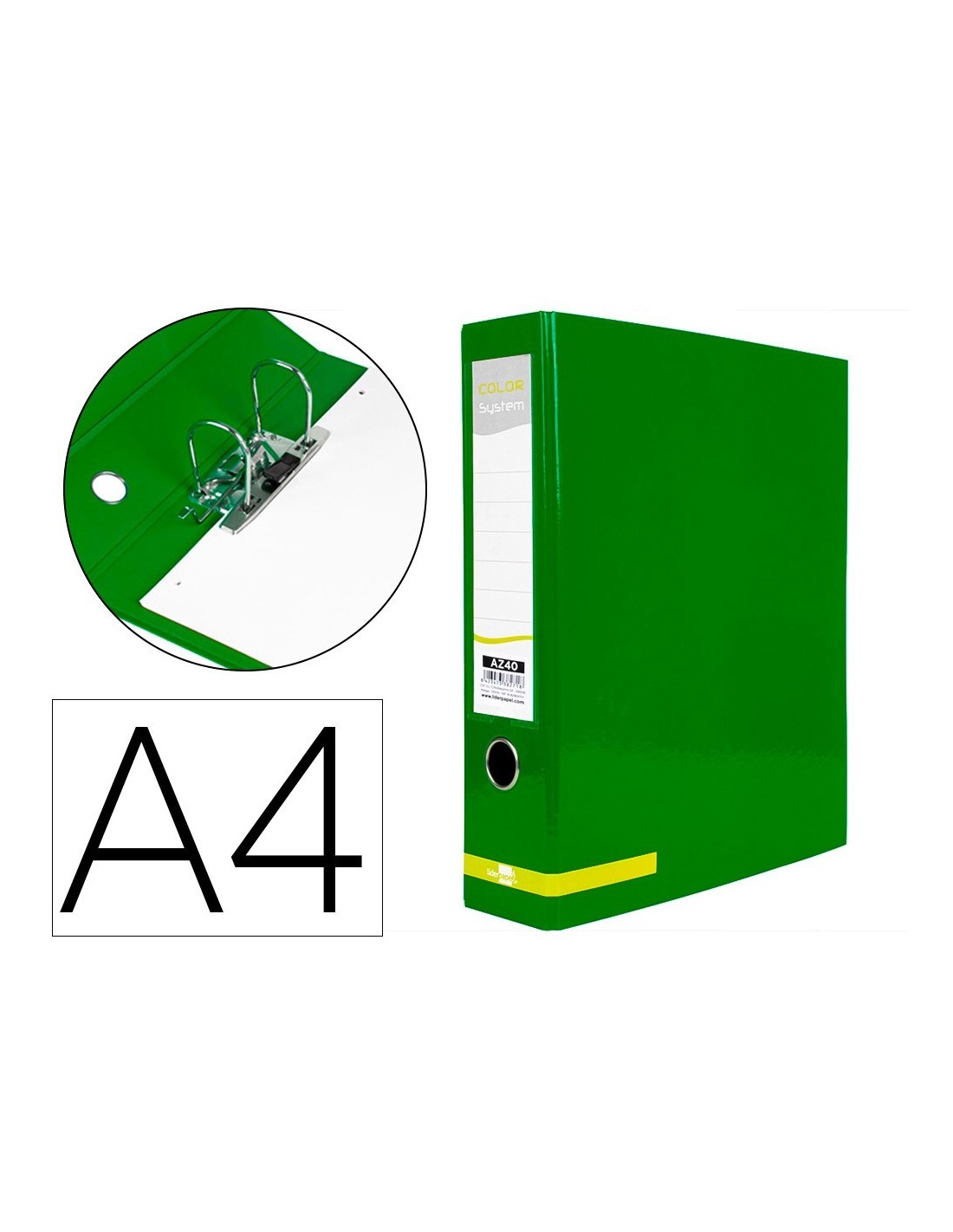 ARCHIVADOR DE PALANCA LIDERPAPEL A4 COLOR SYSTEM FORRADO SIN RADO LOMO 80MM VERDE COMPRESOR METALICO