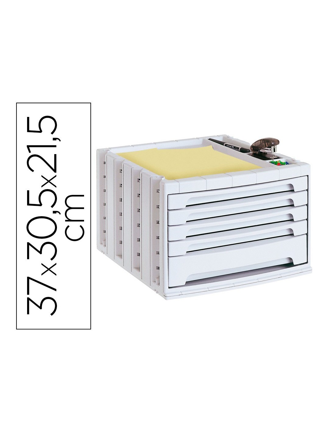 FICHERO CAJONES DE SOBREMESA Q-CONNECT 305X370X215 MM BANDEJA ORGANIZADORA SUPERIOR 5 CAJONES GRIS OPACO