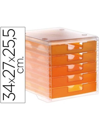 FICHERO CAJONES DE SOBREMESA Q-CONNECT 340X270X260 MM APILABLES 5 CAJONES NARANJA MANDARINA TRANSLUCIDO