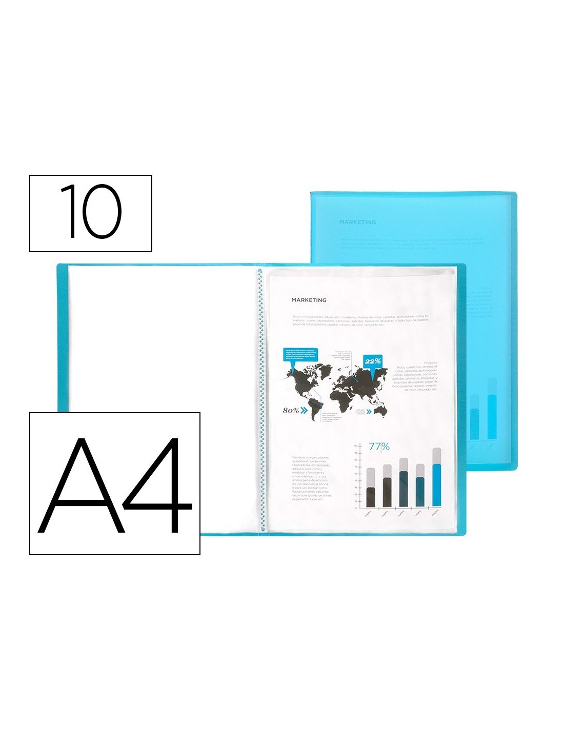 CARPETA LIDERPAPEL ESCAPARATE 47482 10 FUNDAS POLIPROPILENO DIN A4 AZUL TRANSLUCIDO