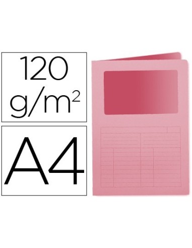 SUBCARPETA CARTULINA Q-CONNECT DIN A4 ROSA CON VENTANA TRANSPARENTE 120 GR