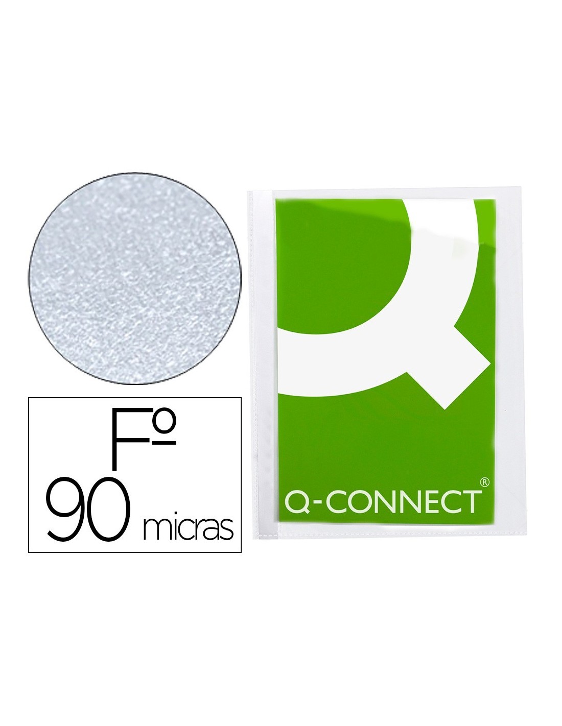 FUNDA PROTECTORA Q-CONNECT CORTE OBLICUO 290X195 CRISTAL SIN TALADROS PVC 90MC CAJA DE 100 UNIDADES