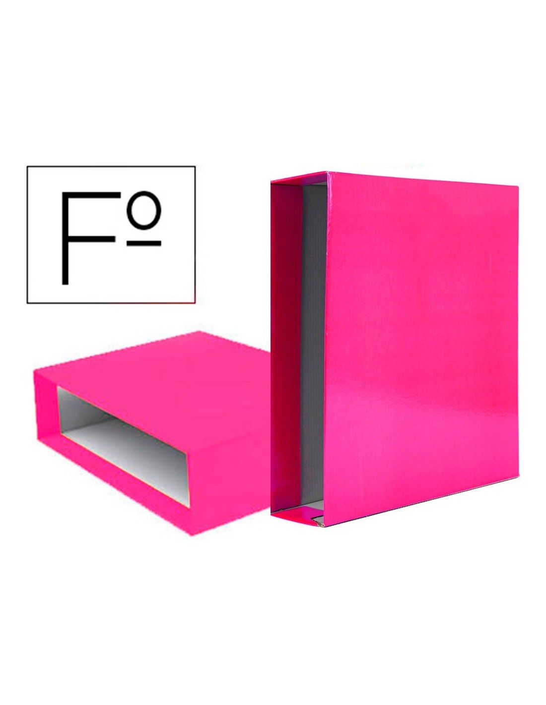 CAJA ARCHIVADOR LIDERPAPEL DE PALANCA CARTON FOLIO DOCUMENTA LOMO 75 MM ROSA