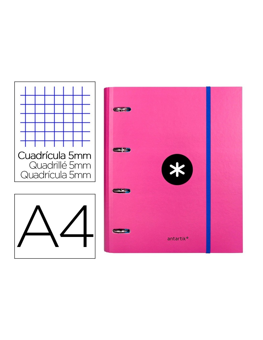 CARPETA CON RECAMBIO LIDERPAPEL ANTARTIK A4 CUADRO 5 MM FORRADA 4 ANILLAS REDONDAS 40MM COLOR ROSA