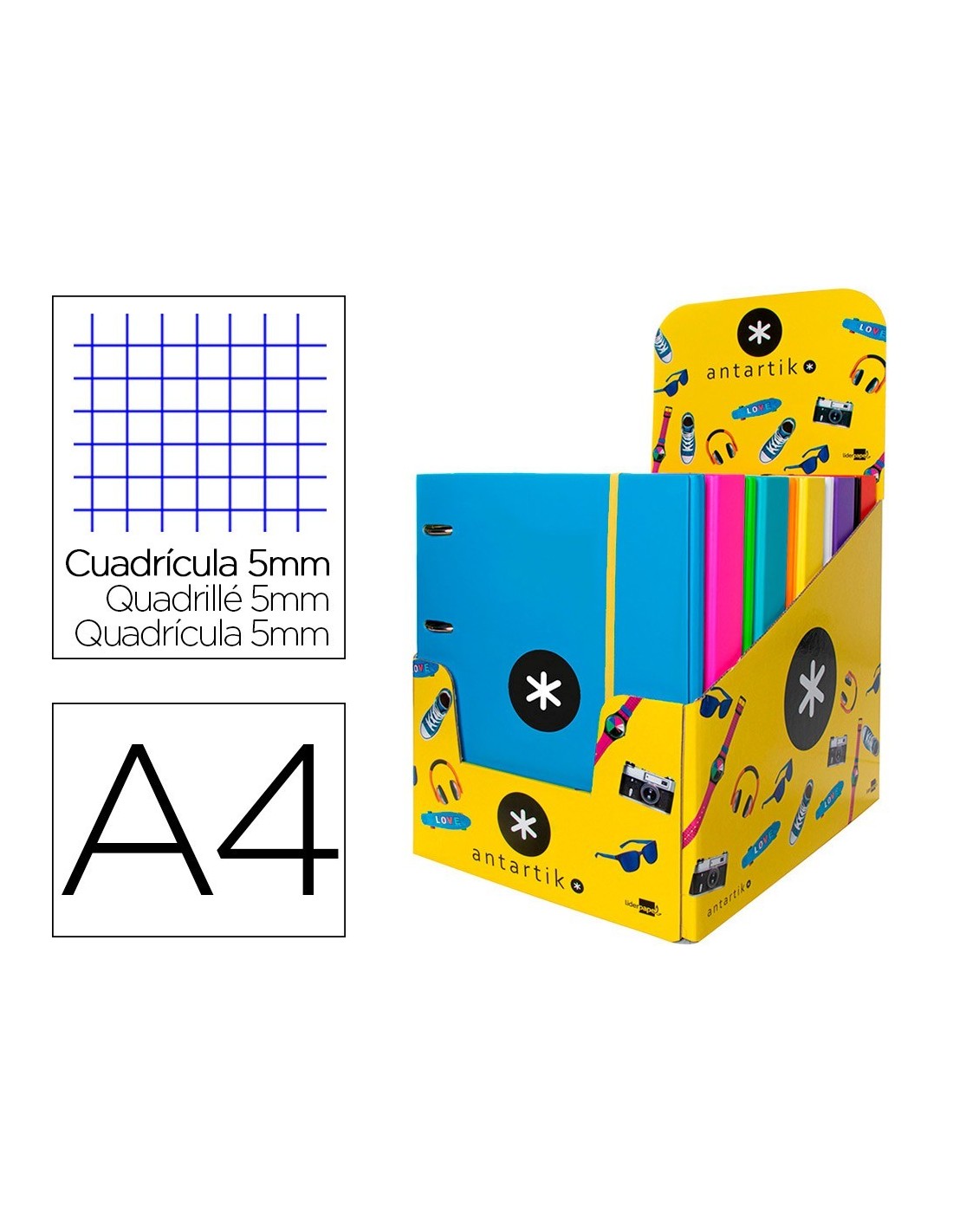 CARPETA CON RECAMBIO Y SOLAPA LIDERPAPEL ANTARTIK A4 CUADRO 5MM FORRADA 4 ANILLAS REDONDAS 40MM COLORES SURTIDOS