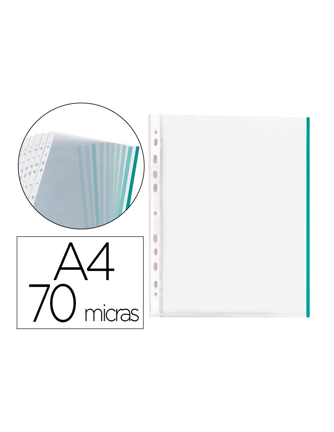 FUNDA MULTITALADRO Q-CONNECT DIN A4 70 MC PP CRISTAL CON BORDE VERDE BOLSA DE 10 UDS