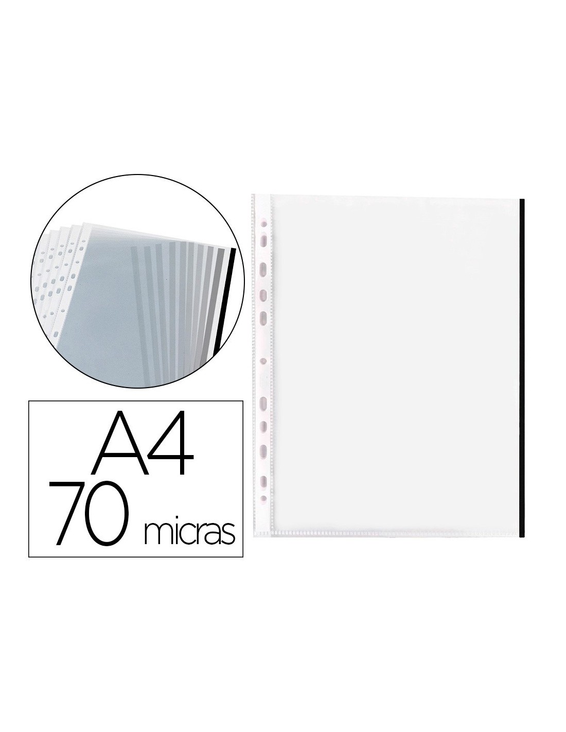 FUNDA MULTITALADRO Q-CONNECT DIN A4 70 MC PP CRISTAL CON BORDE NEGRO BOLSA DE 10 UDS
