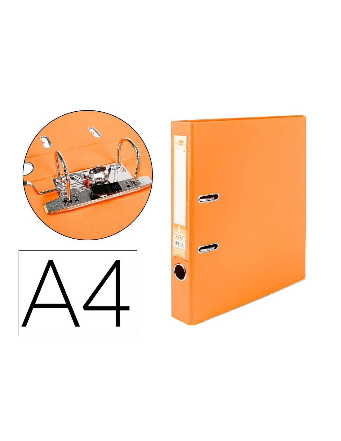 ARCHIVADOR DE PALANCA LIDERPAPEL A4 DOCUMENTA FORRADO PVC CON RADO LOMO 52MMNARANJA COMPRESOR METALICO