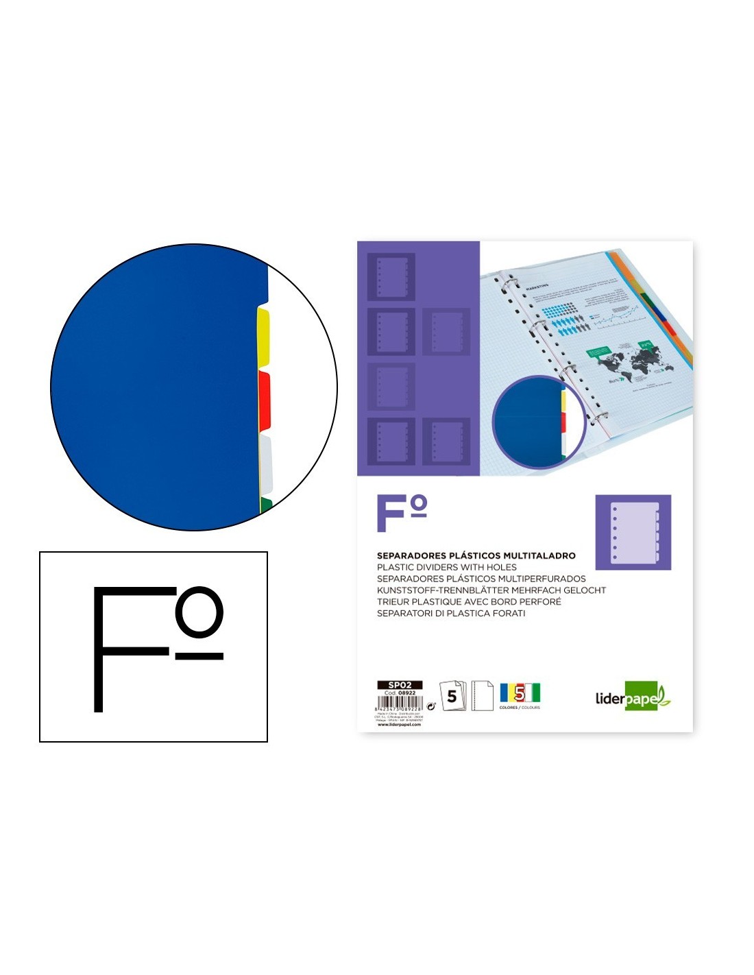 SEPARADOR LIDERPAPEL PLASTICO JUEGO DE 5 SEPARADORES FOLIO 16 TALADROS