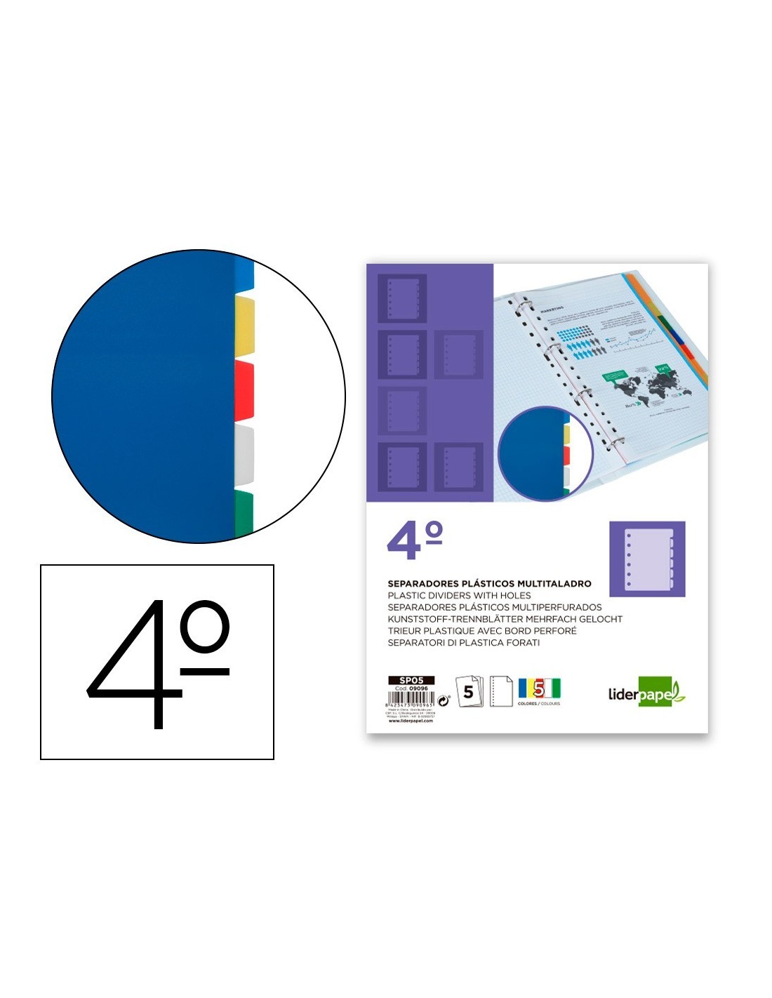 SEPARADOR LIDERPAPEL PLASTICO JUEGO DE 5 SEPARADORES CUARTO 11 TALADROS