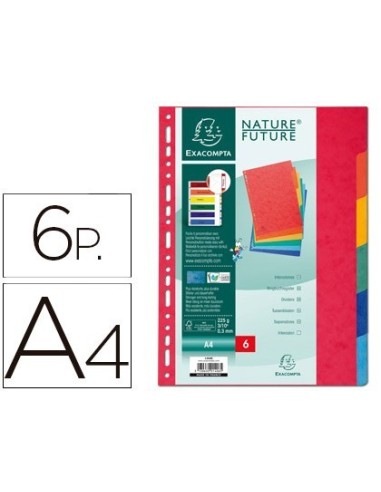 SEPARADOR EXACOMPTA CARTULINA SIMIL PRESPAN JUEGO DE 6 SEPARADORES DIN A4 MULTITALADRO COLORES VIVOS