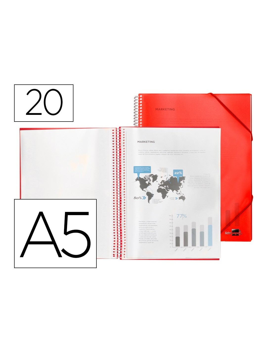CARPETA LIDERPAPEL ESCAPARATE CON ESPIRAL 20 FUNDAS POLIPROPILENO DIN A5 ROJA