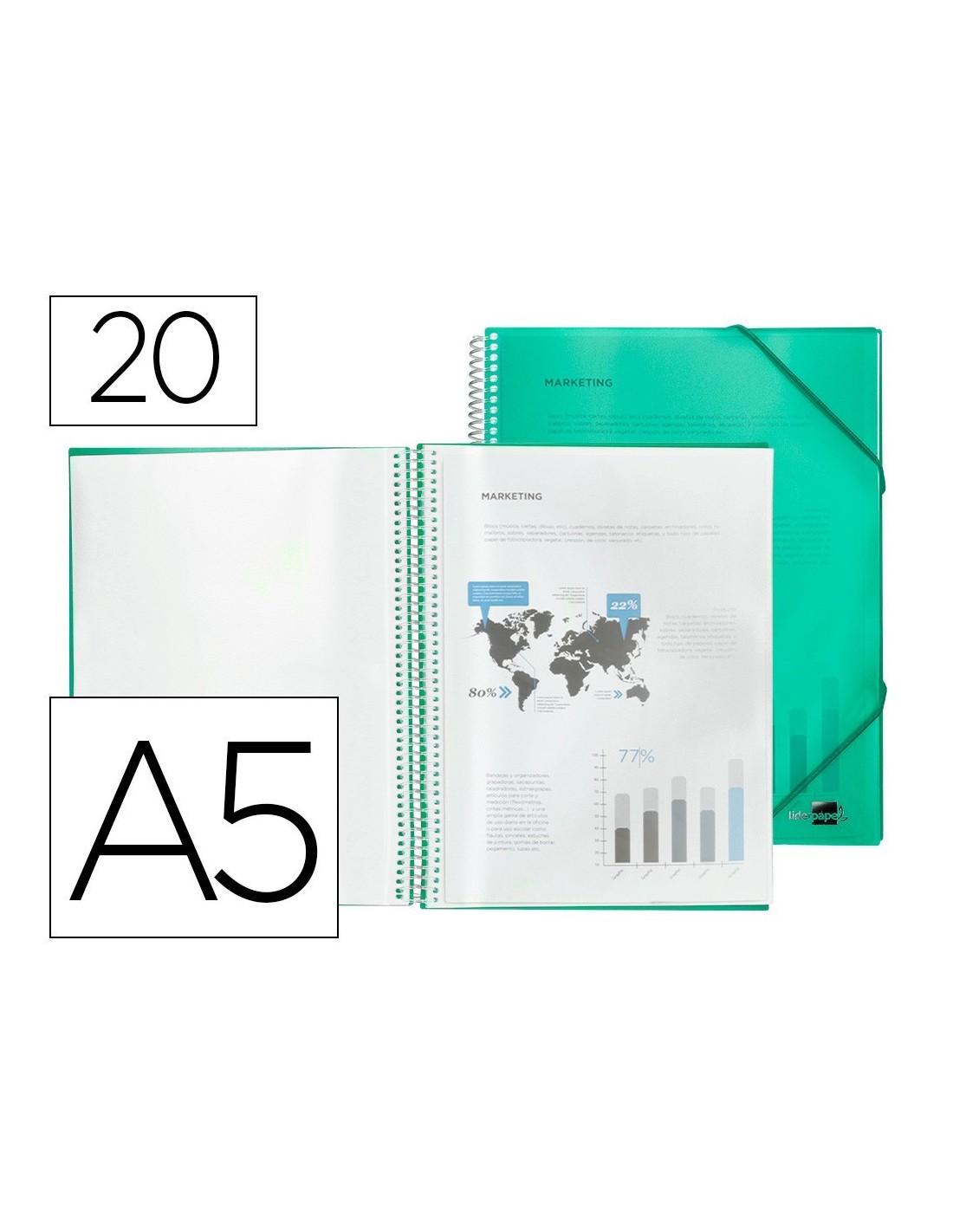 CARPETA LIDERPAPEL ESCAPARATE CON ESPIRAL 20 FUNDAS POLIPROPILENO DIN A5 VERDE