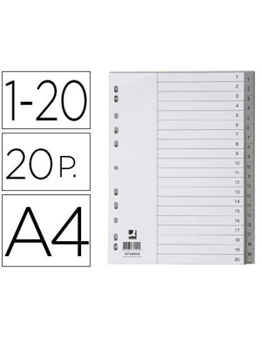 SEPARADOR NUMERICO Q-CONNECT PLASTICO 1-20 JUEGO DE 20 SEPARADORES DIN A4 MULTITALADRO