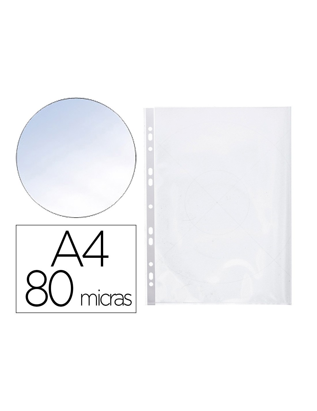 FUNDA MULTITALADRO Q-CONNECT DIN A4 80 MICRAS CRISTAL CON APERTURA SUPERIOR Y LATERAL IZQUIERDA BOLSA DE 25 UNIDADES