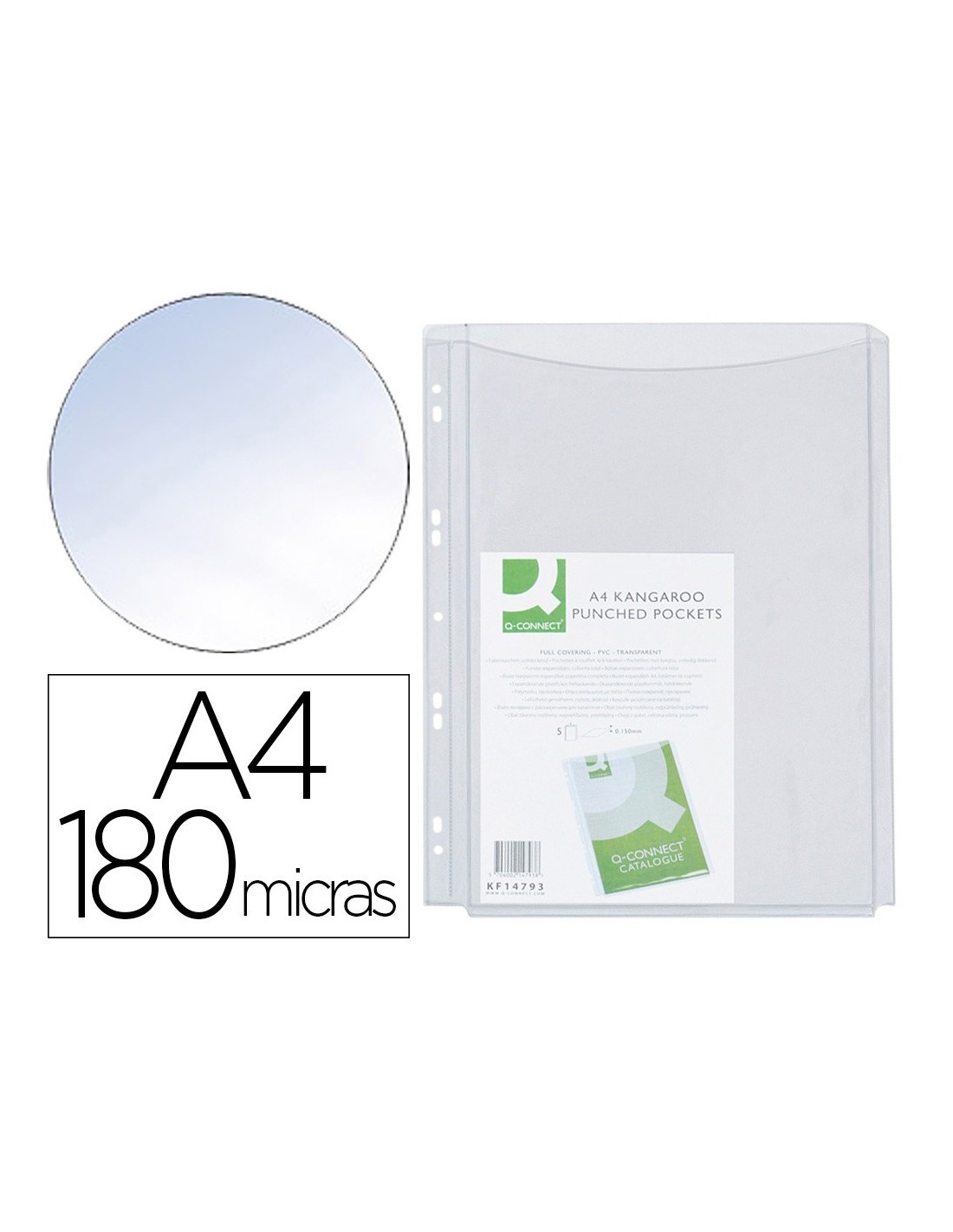 FUNDA MULTITALADRO Q-CONNECT CON FUELLE DIN A4 PVC 180 MICRAS - BOLSA DE 5
