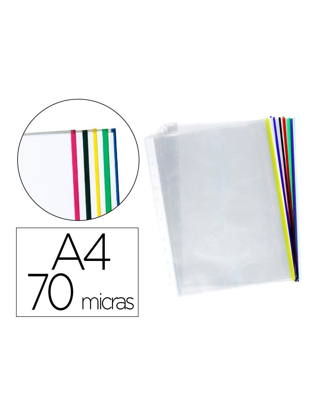 FUNDA MULTITALADRO Q-CONNECT DIN A4 70 MC CRISTAL CON BORDE COLORES SURTIDOS BOLSA DE 25